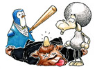 - das comic geht über mehrere seiten ist aber ein grosses bild. nachdem die beiden holzwegredakteure im ersten heft auf einem dixie klo in see gestochen sind landen sie nun auf paradise island auf eine partie golf...